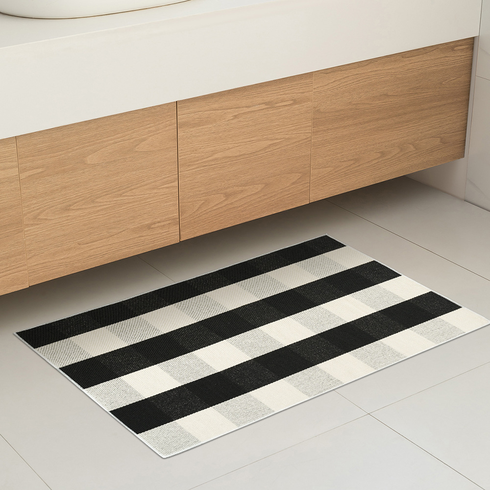 Living room kitchen bathroom outdoor porch cotton linen black and white checkered floor mat door mat